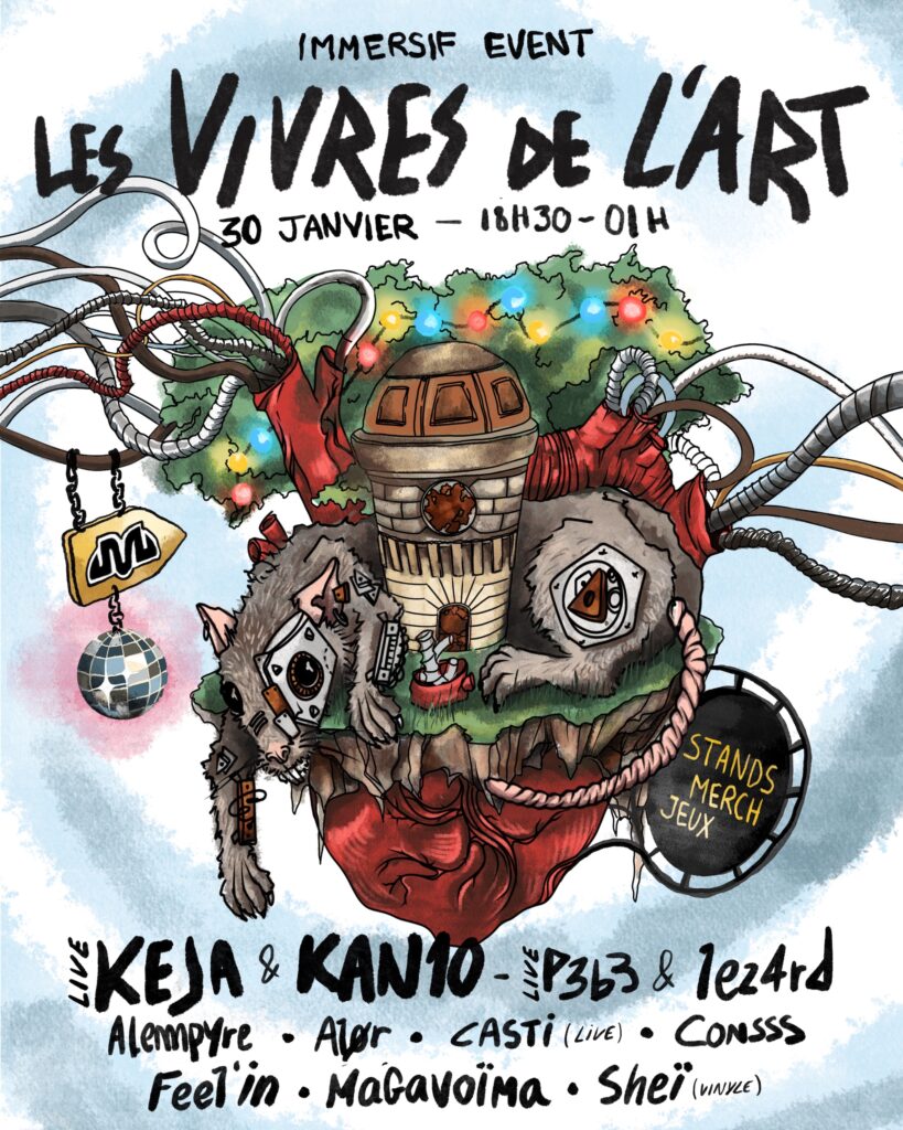 Le collectif Immersif Event a le plaisir de vous convier aux Vivres de l’Art le vendredi 30 janvier, de 18h00 à 01h00, pour une soirée placée sous le signe de la découverte et de la création locale.Fidèles à nos engagements, nous proposons une programmation paritaire et variée, mêlant les sonorités Dub, Groove, Électro Dirty et Tribe.Au-delà de l’expérience sonore, cet événement sera sublimé par une scénographie originale conçue par nos soins. Vous y retrouverez des stands, des activités, ainsi qu’un espace restauration. Notre stand de merchandising fera également son grand retour !Le petit secret de la soirée ? Une deuxième scène cachée attend les plus explorateurs d'entre vous...Afin de garantir le confort de tous.tes, la jauge est limitée.Nous vous invitons à réserver vos places dès maintenant via notre billetterie en ligne ICI.